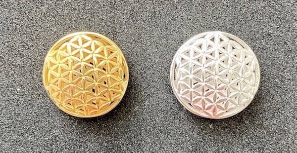 Die Guru-Perle „Blume des Lebens“ ist wahlweise in Gold oder Silber erhältlich.