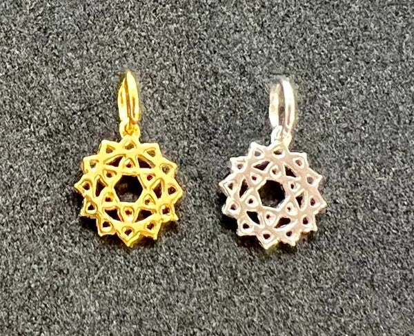 Der Chakra-Anhänger ist wahlweise in Sterling Silber oder Sterling Silber vergoldet erhältlich.
