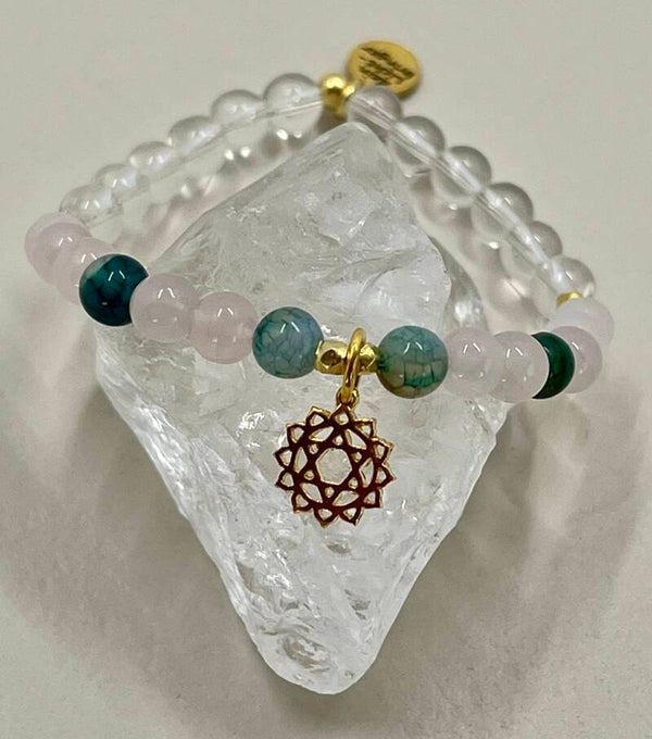 Dein Herzensbegleiter für das Anahata Chakra (4. Chakra) aus Rosenquarz, grünem Turmalin und Bergkristall (6 mm) öffnet dein Herz für Liebe – zu dir selbst und zu allem, was dich umgibt.