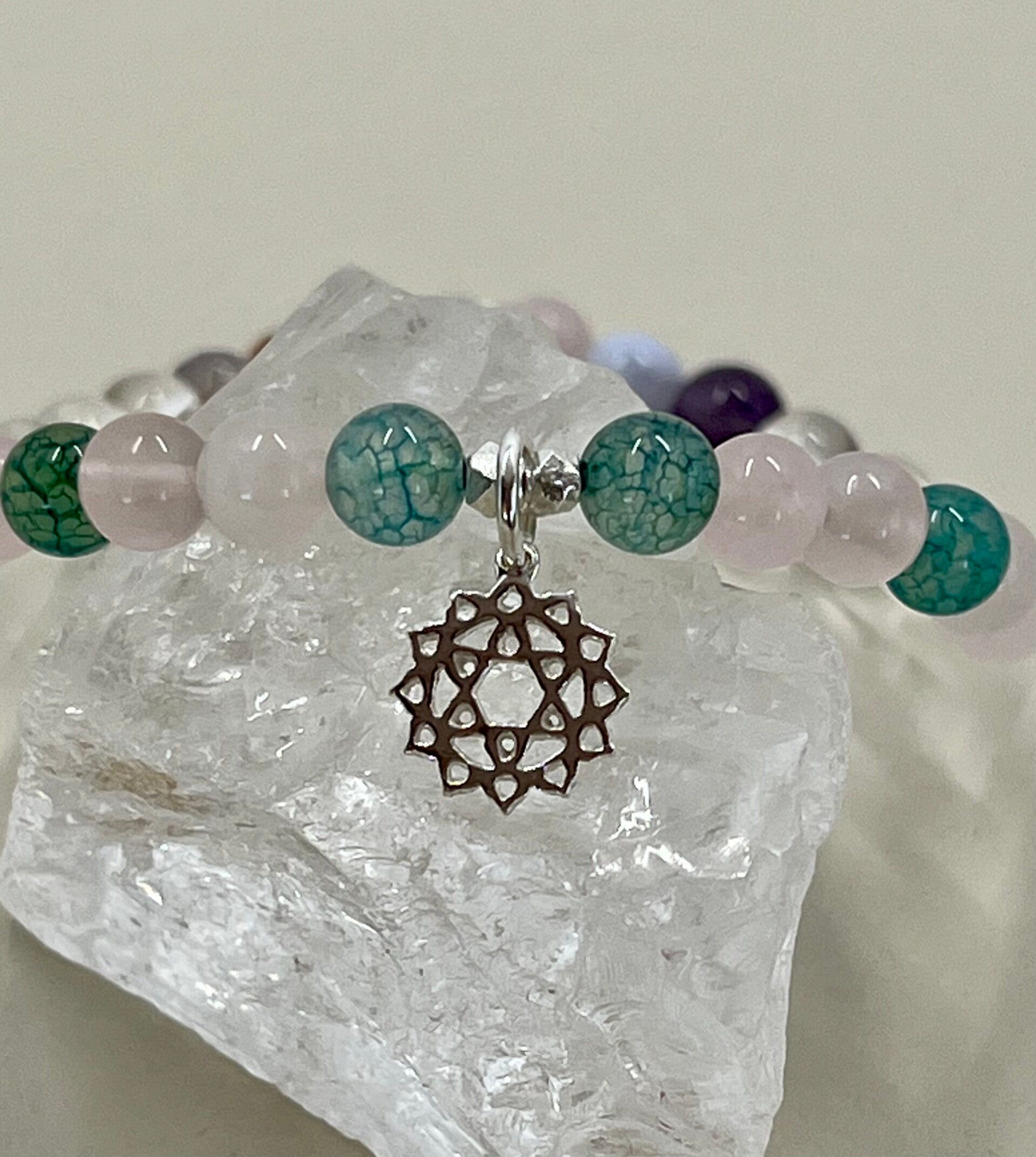 Dein Herzensbegleiter für das Anahata Chakra (4. Chakra) aus Rosenquarz, grünem Turmalin und Bergkristall (6 mm) öffnet dein Herz für Liebe – zu dir selbst und zu allem, was dich umgibt.