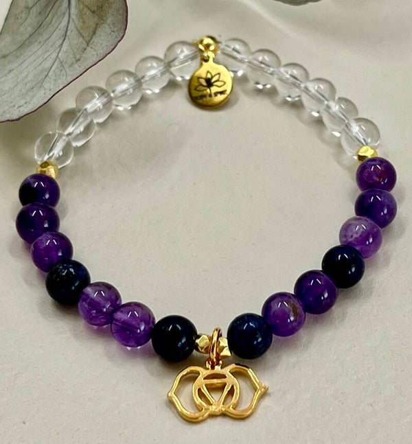 Dein Herzensbegleiter für das Ajna Chakra (6. Chakra) aus Amethyst, Azurit und Bergkristall (6 mm) öffnet den Raum für dein inneres Licht und deine intuitive Weisheit.